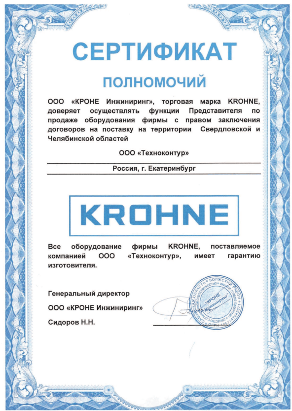 Сертификат КРОНЕ Техноконтур
